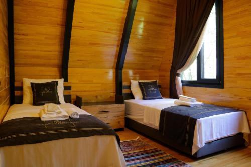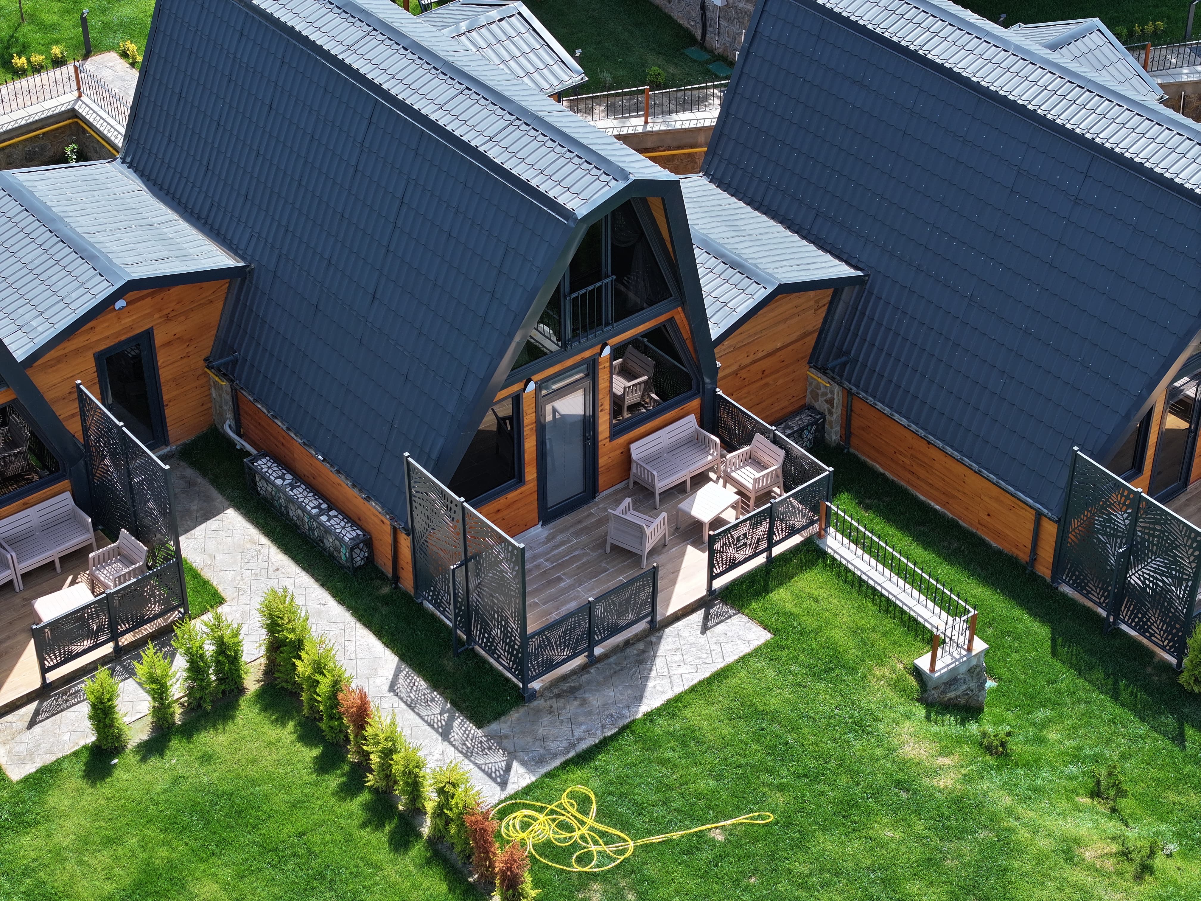 Muhteşem bir tatil mekanı. Mekanın içerisinde 8 ayrı bungalov bulunuyor. Misafirleri ağırlayacak olan bu bungalovlar 80 metrekarelik bir yaşam alanı sunuyor. Yüksekliği 6 metreye kadar uzanan tavanıyla ferah ve hijyeni bir tatil deneyimi yaşamanıza destek oluyor.